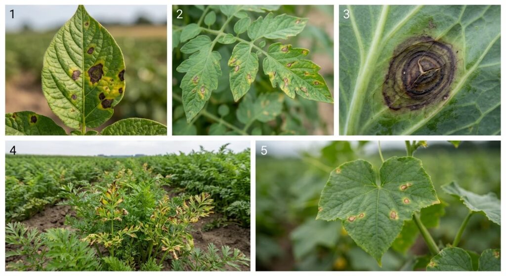 بلایت آلترناریایی برگ (Alternaria Leaf Blight) یکی از بیماریهای قارچی مهم گیاهان جالیزی است که عامل آن قارچ Alternaria cucumerina میباشد. این بیماری بیشتر در طالبی مشاهده میشود اما در خیار، خربزه و کدو نیز دیده شده و میتواند باعث کاهش عملکرد و کیفیت محصول شود.