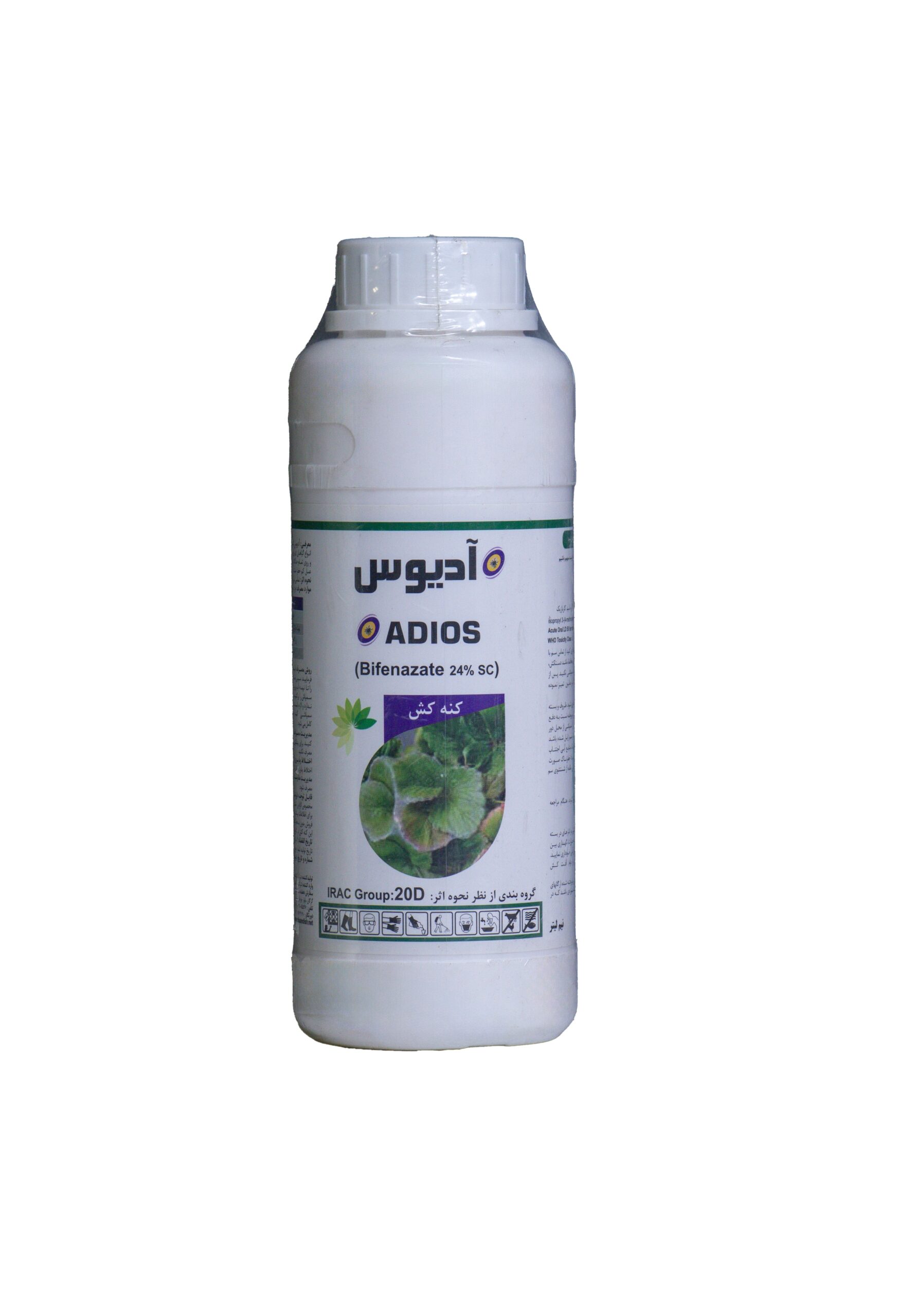 آدیوس یک کنهکش گستردهطیف با ماده مؤثره بایفنازیت SC 24% از گروه کاربازیتها است که برای کنترل انواع کنههای تارتن (Tetranychidae) بهکار میرود. این کنهکش دارای اثر تماسی بوده و با اختلال در عملکرد گابا (GABA) در سیستم عصبی کنهها موجب فلج و مرگ آنها میشود.