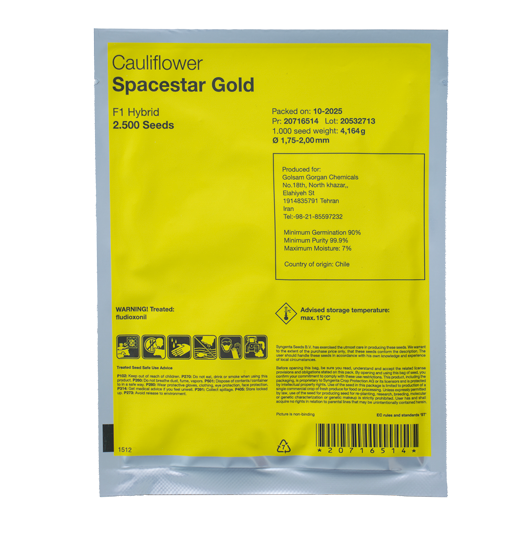 گل کلم هیبرید اسپیس استار گلد (Space Star Gold F1)، گل کلم اسپیس استار گلد رقمی میان‌رس با قدرت رشد بالا و پوشش برگی بسیار قوی است که به‌دلیل محافظت عالی هد در برابر نور، کیفیت و ثبات رنگ مطلوبی در مزرعه ایجاد می‌کند. این رقم برای کشت بهاره و پاییزه مناسب بوده و با برداشت متمرکز، انتخابی مطمئن برای بازار تازه‌خوری و فرآوری محسوب می‌شود.